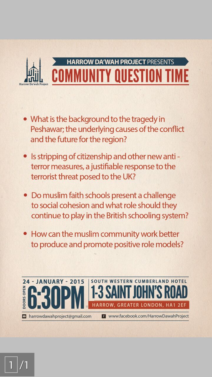 Four speakers from the Muslim Community in Harrow, London (UK) have been invited to talk about the key issues occurring amongst the Muslim community.