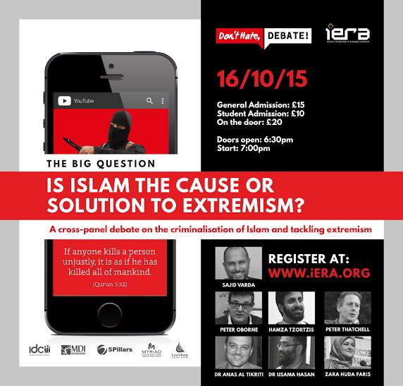 Limited seating, register now to avoid disappointment:http://www.iera.org/event/the-big-question-is-islam-the-cause-or-solution-to-extremism